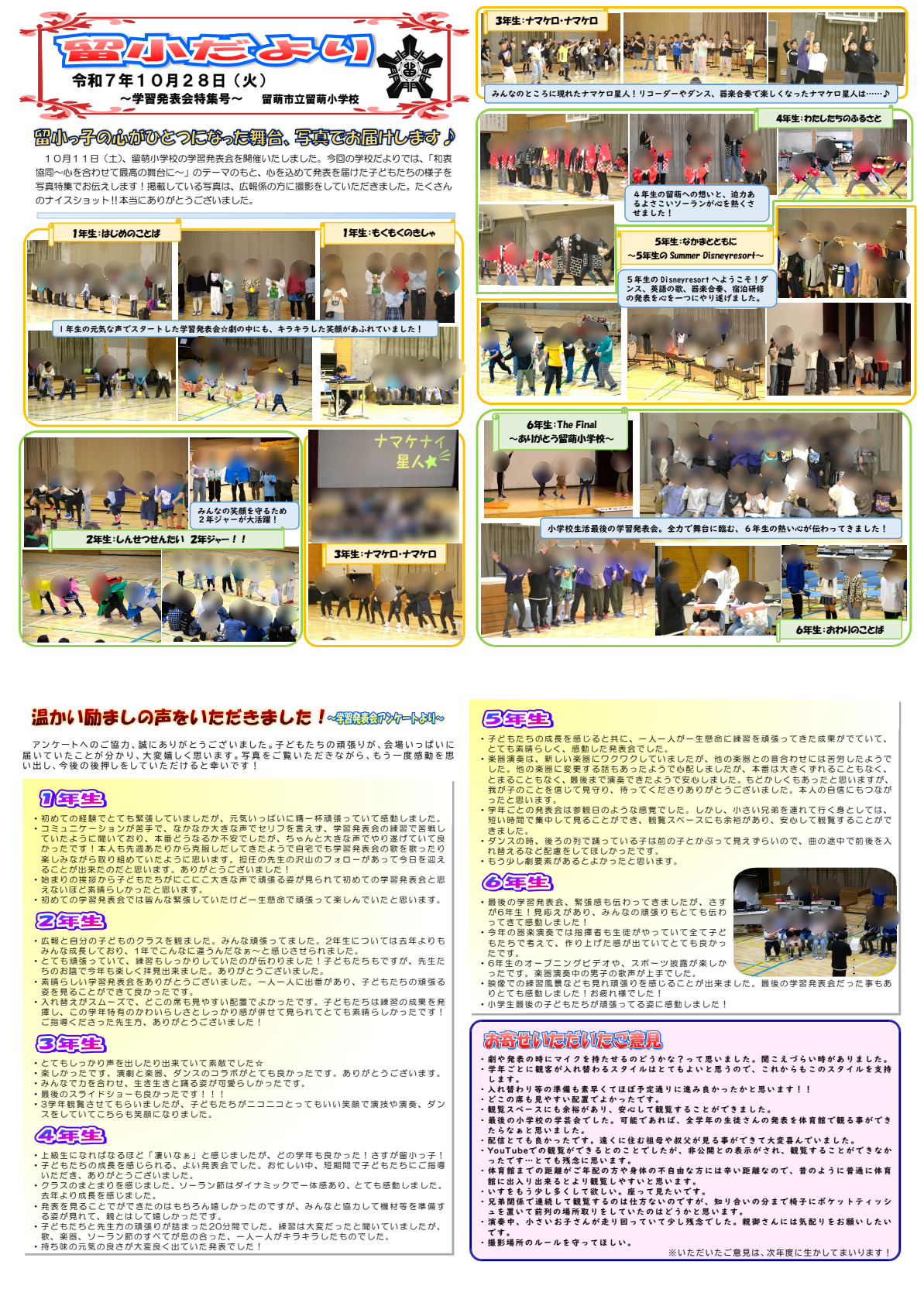 R7留萌小学校だより(10月28日発行 学習発表会特集号) PNG
