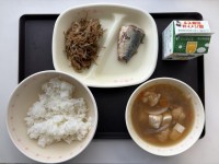 今日の献立は、ごはん、つみれ汁、さばみそ煮、金平ごぼう、牛乳です。さばの旬は冬で...