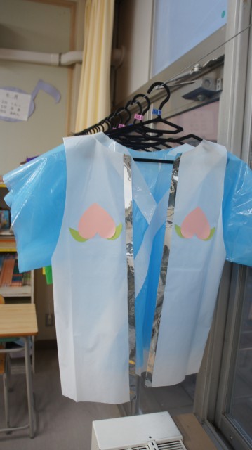 写真は、2年生のものです。担任の先生が、1つ1つ丁寧に作っていて、クオリティーの高いものばかりです。これを初めて着た時、子ども達が満面の笑みで嬉しそうに演技する様子が目に浮かびます。