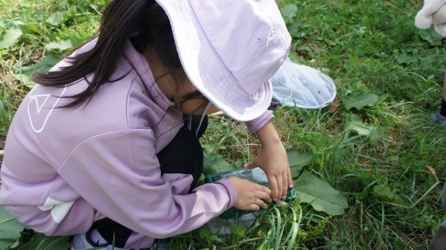 「バッタがいたよ!」「トンボを捕まえた!」など、楽しそうな声が職員室まで聞こえてきたので、私も混ぜてもらいました。怖がるそぶりもなく、必死になって捕まえる姿はとても頼もしく思いました。
