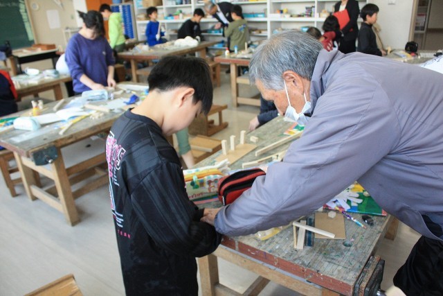 4年生:図工の授業。イメージしたものを作品にするために、安全に気を付けて怪我なく行えているところが素晴らしい!