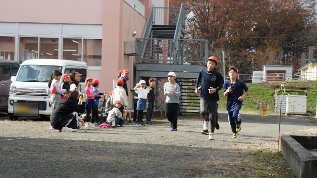 ある学年では、ゴールした子ども達が走っている子ども達に並走して、「もう少し!」「頑張るぞ!」と声をかけている姿が印象的でした。