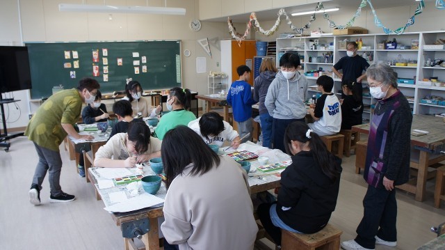 「絵手紙クラブ」では、「平取絵手紙の会」の方々に講師として来ていただき、素敵な絵葉書を作成していました。