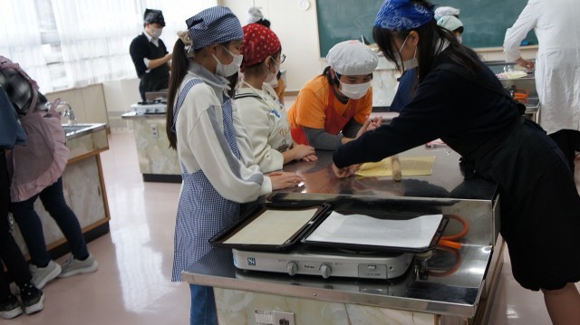 「家庭科クラブ」では、平取高校トマトクラブの生徒さんに来ていただき、一緒にトマトジャムクッキーを作りました。