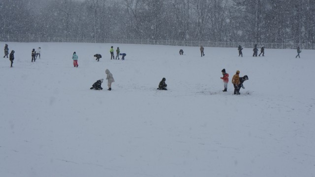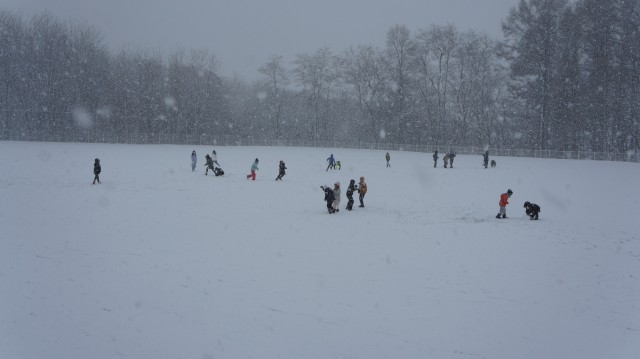 雪に変わったおかげで、大手を振って雪の中で遊べる子ども達。多くの学年がグラウンドへ行き、今シーズン初!?の雪遊びを満喫していました。