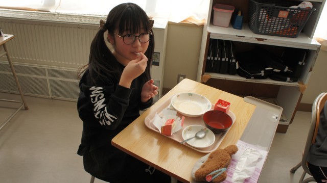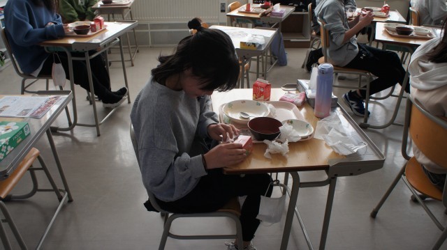 給食の様子を見に行きました。大事そうに箱を開ける子、何口にも分けて味わって食べる子など、それぞれです。本当に嬉しそうに食べていました。