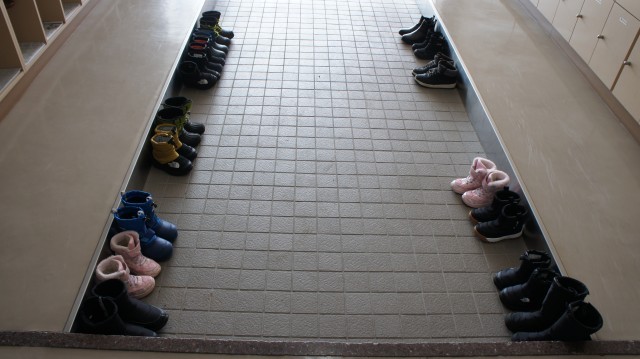 しっかり挨拶をして、きれいに靴を並べて校内に入りました。先生の指示を聞いて動けるのは、さすが年長さんです。