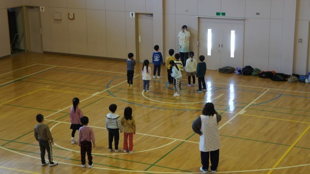 (体育館に入った子ども達が真っ先に言ったのは、「ひろ~い!」でした。午後のお昼寝はぐっすり…かな?)