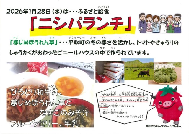 1月24日~30日は「全国学校給食週間」となっており、平取町ではリクエストメニューをはじめ、北海道の郷土料理が盛りだくさんの給食になっています。