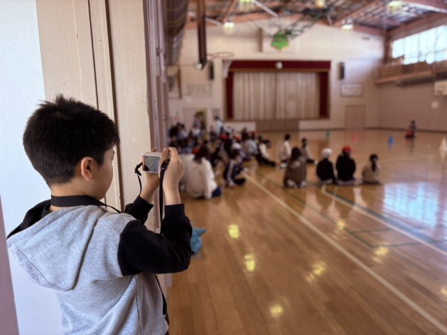 行事が立て込んでいたこともあり、カメラマンを子どもにお願いし、撮影してもらいました。おかげで、体育館には行っていませんが、私も雰囲気を味わうことができました。