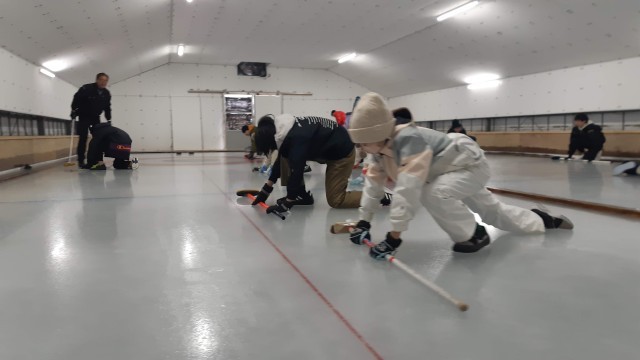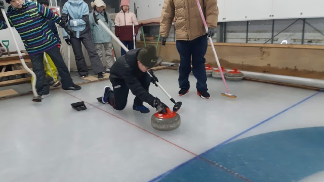 ありがたいことに、平取町には「カーリング場」があります。そのため、平小の5・6年生は振内にあるカーリング場へ行き、体験することができます。恵まれた環境に感謝です。