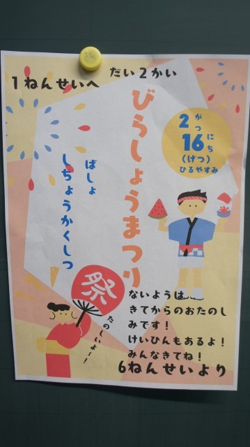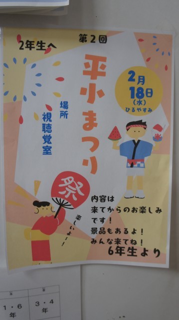 6年生から「全学年と思い出を作りたい!」ということで、「平小まつり」が開かれることになりました。16日(月)~26日(木)の期間内の昼休みを使って、行うようです。出店みたいな形になるのでしょうか?