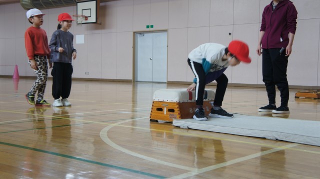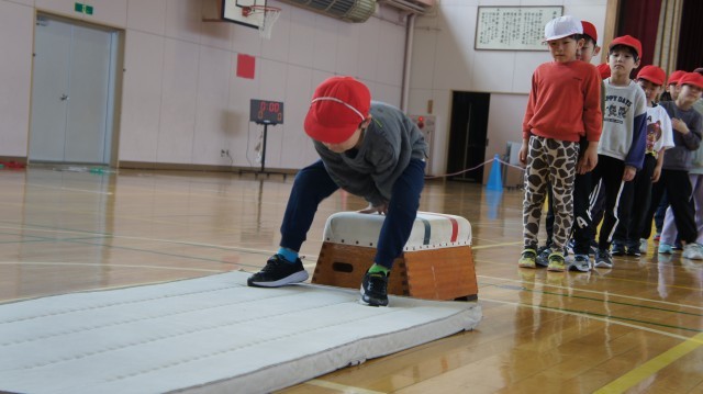 助走からの「両足踏切」「手をつく」「着地」の一連の流れがスムーズで、「これが来年以降の跳び箱の授業に繋がるのだなぁ」と思って見ていました。