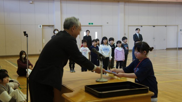 担任の先生から呼ばれた時の各学年の返事、「立つ」「座る」の機敏さ、話を聞く姿勢。卒業式練習が活かされていました。