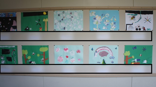 1学期が始まって2週間が経ちました。教科の学習が順調に進んでおり、廊下には授業で作成した作品が並び始めました。