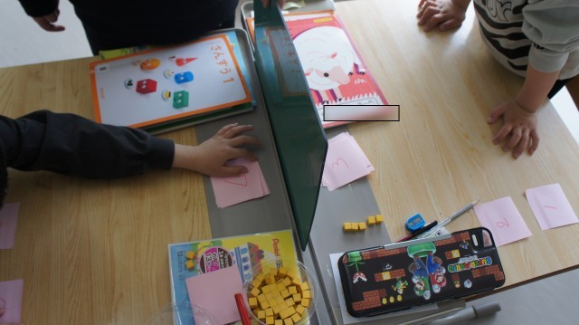まず、1~9のカード(付箋に書いてある)をそれぞれ準備します。その中から、カードを1枚提示します。(ここまではお互い見えません)