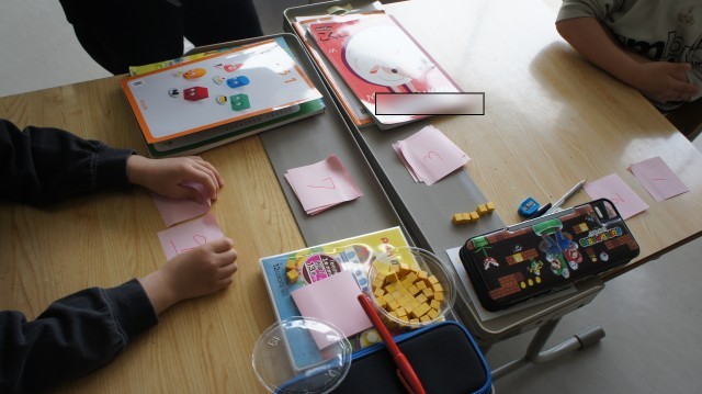 すずらん学級の授業を見に行く機会がありました。1年生2名の児童が、楽しそうに算数の学習をしています。