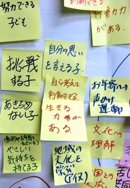 先週末、町の学校運営協議会が開催されました。「学校だけで子ども達を育てるのではなく、地域全体で子ども達を育てていく…。」「子ども達は、将来の平取町を担う存在。全町民が責任をもって意見を述べ、責任をもって学校を支援しよう。」「支援活動から協働活動へ」「すべては子ども達のために!」 協議会の前に行われた講演会において印象に残った言葉をならべてみました。この後、参加者が校区ごとに分かれ、「子ども達への願い」や「協働してできること」などを話し合う場をもちました。その成果が写真の通りです。参加者には、教員や保護者だけではなく地域の方も含まれていましたが、共通の願いとなったのは…「思いやり」でした。学校の重点目標でもあり、地域全体で力を入れていくべきテーマなのかもしれません。気持ちを新たにして教育と向き合うことができるような良き機会だったように思います。