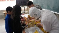 一年間を通じて、児童会書記局は、朝の挨拶運動を行ってくれています。書記局のメンバーが、児童玄関で大きな声で挨拶をするので、登校してきたみんなも元気な挨拶で返します。11月までは、玄関の外でしたが、12月からは防寒のために玄関の中で取り組んでいます。挨拶の後には、ジャンケン&あっちむいてホイのおまけもあり、これを朝一番の楽しみにしている人もいるぐらい…。おかげで平小の朝は、挨拶と笑顔であふれています。