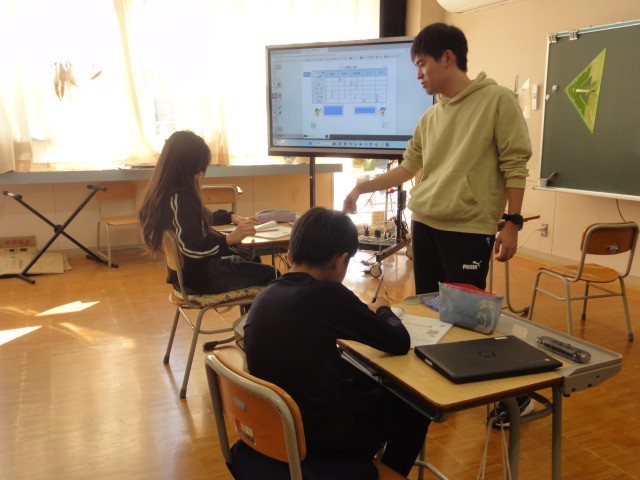 4年生の算数は「整理の仕方」という学習をしています。データを表にまとめたりする学習ですが、理科や総合的な学習の時間など他教科でも活用できるのでぜひ覚えてほしいですね。同じ時間に1・2年生は劇の確認をしていました。体調が万全ではない子もいますが、声を出して自分の役をしっかり演じていてとても立派です。