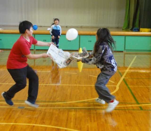 20分休みに書記局のレクがありました。2人1組になり、新聞紙で風船を運びリレーをするゲームです。久しぶりのレクでみんな楽しそうでした。