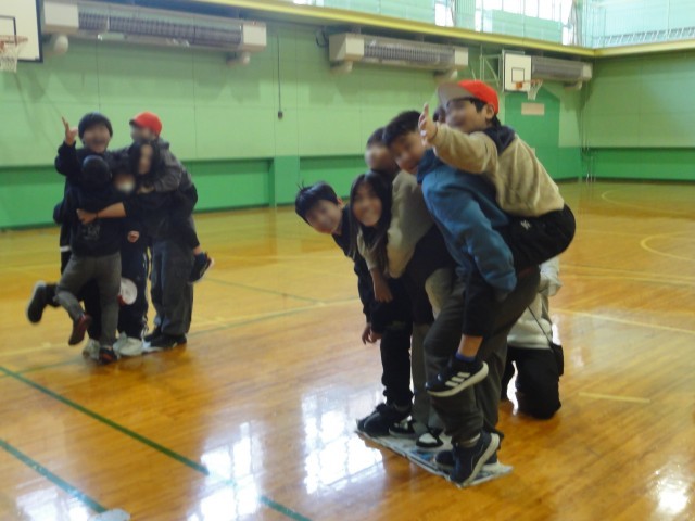 20分休みに書記局レクをしました。ゲームは「なかよしの木」。校長先生とジャンケンをして負けたら新聞が半分になっていくゲームです。ジャンケンに負けるとどんどん新聞が狭くなるのでチームメイトを背負ったりしながら何とかクリアをしていました。班で協力しながら落ちないよう頑張っていましたね。