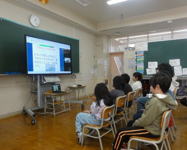 鹿児島県にある南種子町立花峰小学校とつなぎ、花峰小学校の発表を聞きました。よく調べ、まとめていました。先日はハララキ集会の様子を見てもらい、今回は発表を見るということで貴重な経験をすることができました。