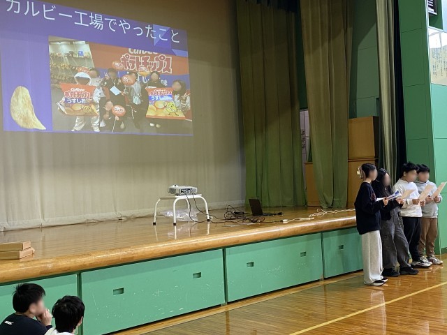 2時間目に2学期の終業式が行われました。校長先生の話では静電気で遊べる道具を使って「冬にしかできないこと」について説明されました。冬休み中はこの時期しかできない発見をいろいろ探してみてほしいと思います。その後、4年生の2学期の思い出発表とクリスマスメドレー演奏、5・6年生の2学期を振り返ってと5年生の社会科見学で学んだことの発表がありました。どちらとも堂々と発表し、練習の成果が発揮されていたと思います。