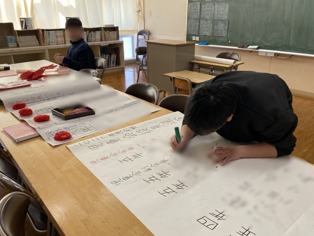 昼休み、選挙管理委員は児童会役員選挙の準備に一生懸命取り組んでいます。今日は当選のお花を作ったり、掲示用の大きな名簿を丁寧に書きあげていました。みんなのために頑張る姿は見ていて気持ちが良いものです。