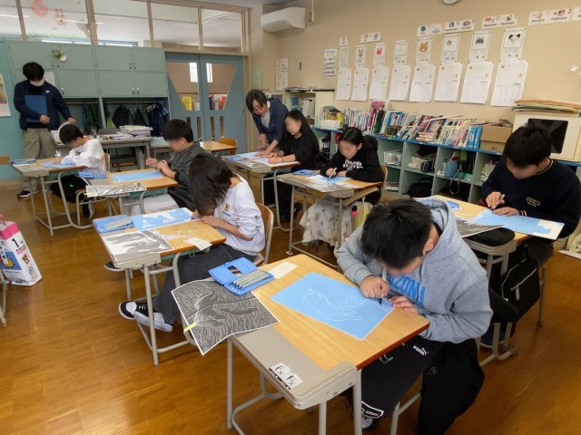 今日はどの学年も図画工作の学習がありました。1・2年生は『たいせつボックスを作ろう』という学習で、白の箱の周りをキラキラした紙やモール等を使って飾りつけていました。4年生と5・6年生は版画の学習をしていました。4年生は「実在する生物」というテーマで描いた絵を板に写す作業で、5・6年生は板に写した細やかな絵を丁寧に彫り進めていました。どの学年も図画工作の時間は楽しそうです。