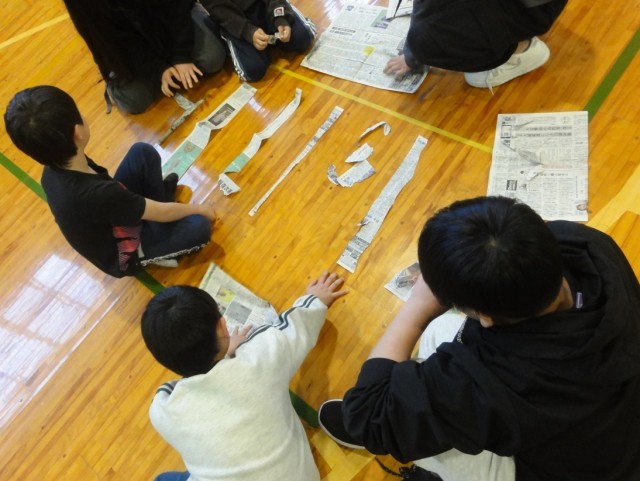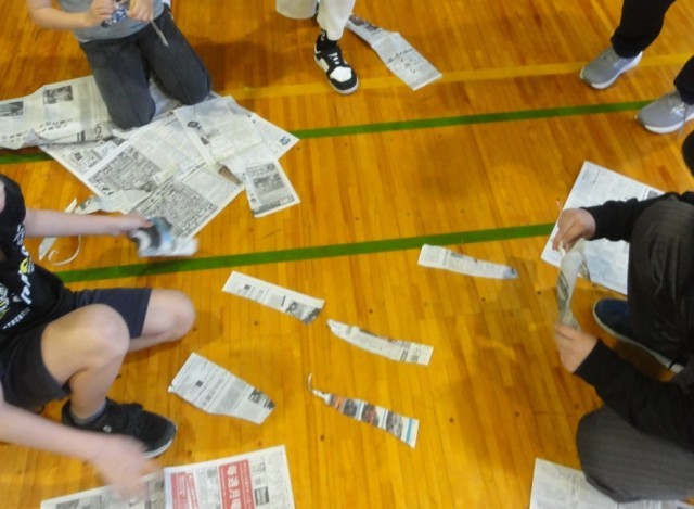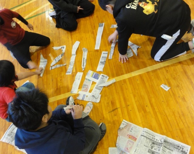 毎週水曜日はみんなでレクをしています。今日のレクは新聞を切って、数字をつくるゲームです。どうでしょう、どんな数字にみえますか?
