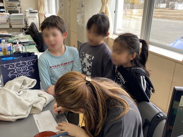アイヌ語学習やハララキ学習の時間など、いつも子ども達のことを見守ってくれた学生さん。二風谷小学校に来られるのは、本日が最後となりました。