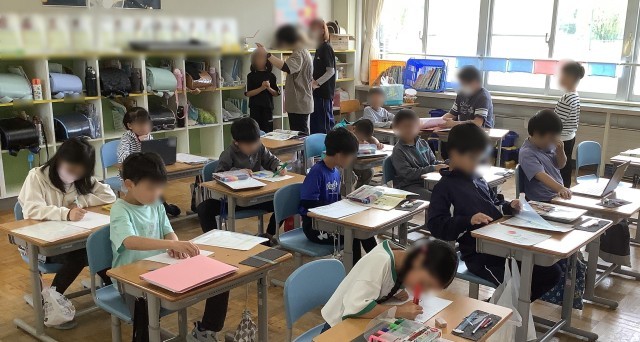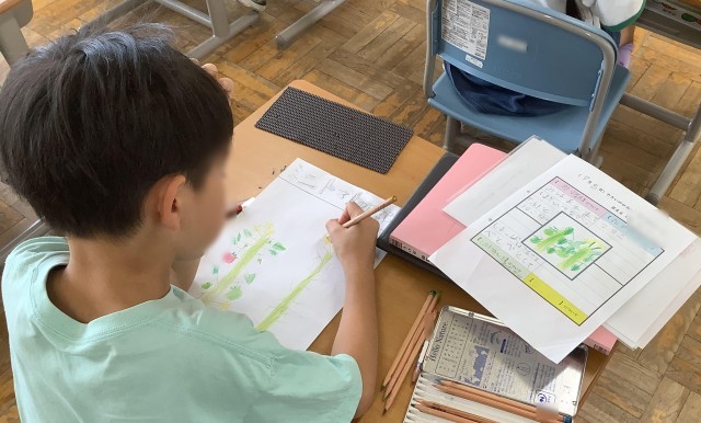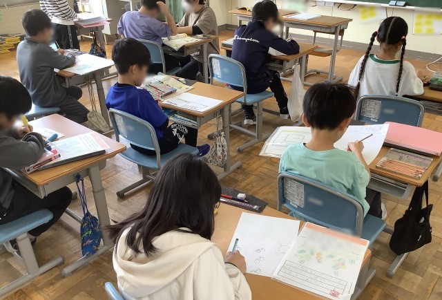 10/1(水)、今日から後期のスタートです。2年生の生活科「やさいのきろくのまとめ」です。子どもたちが育ててきたミニトマトのこれまでの記録をまとめました。「かんさつカード」や「やさいのひみつ発見カード」を見返しながら、新聞や日記、紙芝居などでまとめていきました。端末を使って新聞をつくる子は、文字を打ち込んだり、写真を撮って画像を貼り付けたりと、上手に使っていました。この活動は、表現力等を身に付けるだけではなく、3年生での理科「植物の成長のしくみ」などの学びへとつながっていきます。