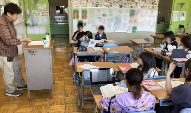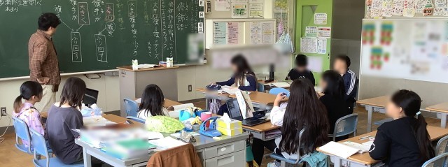 10/7(火)、4年生の国語「修飾語」です。言葉の関係性を理解したり、表現力を高めたりする学習です。「旗手が大きい旗を振り回す」「旗手が大きく旗を振り回す」の例文から、修飾語や文の組み立てについて学びました。その後の練習問題では、文の組み立てを図にしたり、「どんな」「どのように」「どれくらい」などの言葉を各自が考えたりと、友達とも交流し合いながら、一生懸命学習していました!