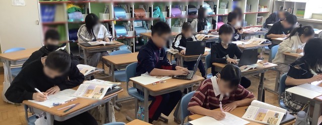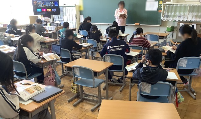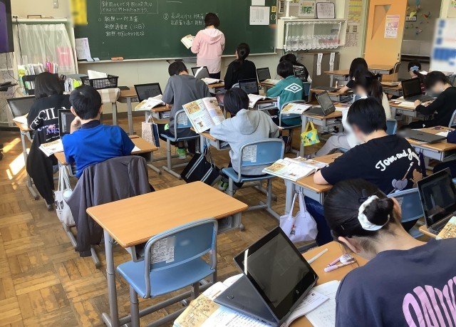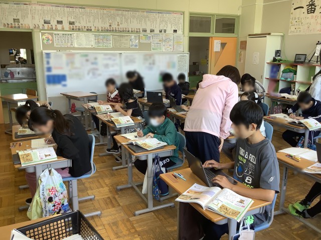 10/9(木)、6年生の社会科「鎖国のもとでの交流」です。鎖国下での江戸時代の外国との交流を調べ、幕府の外交政策や交易の様子を捉えることがねらいです。全員で朝鮮との交流を確認してから、北海道か沖縄かを選び、どちらかの交流の様子を各自が教科書やインターネットで調べ、まとめました。長崎以外にも、対馬藩、薩摩藩、松前藩を通して、朝鮮、琉球王国、アイヌの人たちと交流・交易をしていたことを理解しました!