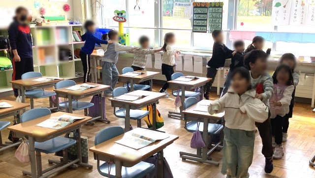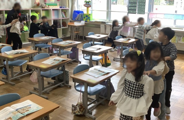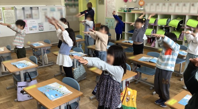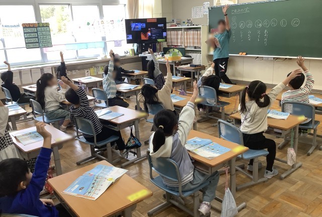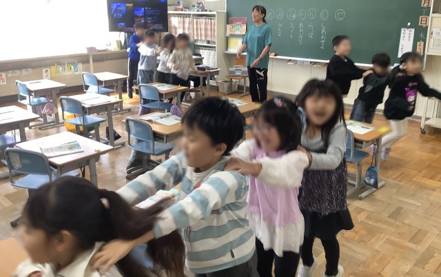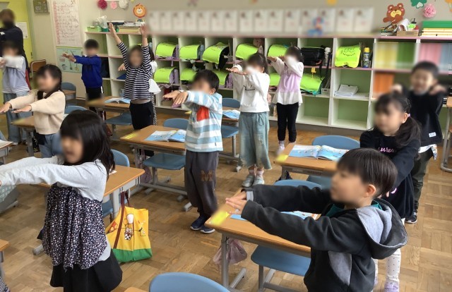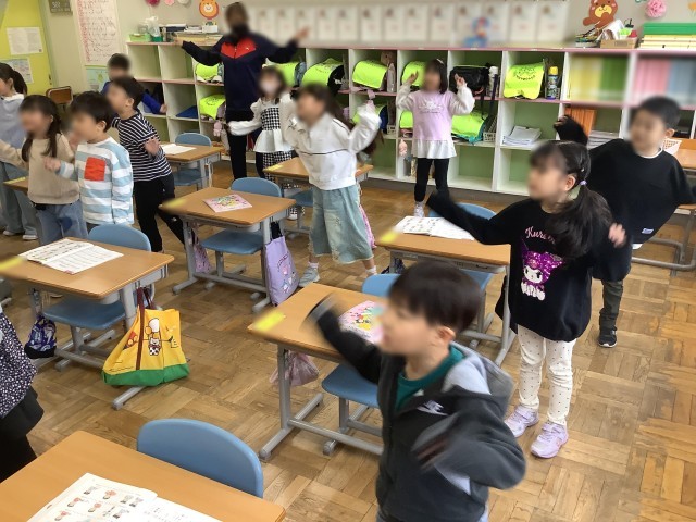10/23(木)、1年生の音楽「どれみにあわせてからだをうごかそう」です。まずはいつもの歌「さんぽ」で元気にウォーミングアップ、次は「どれみのうた」です。しっかりと歌詞の確認をしてから、音階に合わせて、両手を挙げていきました。みんな楽しそうに、音の高さを体で感じながら歌っていました。最後は「しろくまのジェンカ」です。列の先頭を決めて、ジェンカのリズムに合わせて、教室の中で歌いながら踊りました。音階感覚を身に付けながら、音楽の楽しさを感じています!
