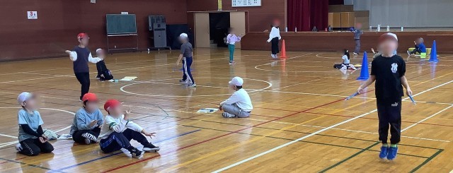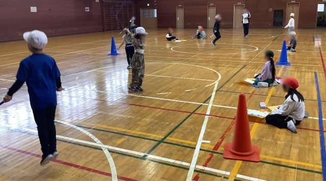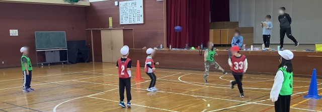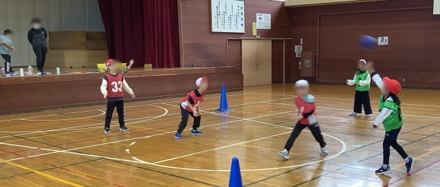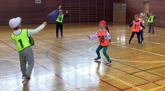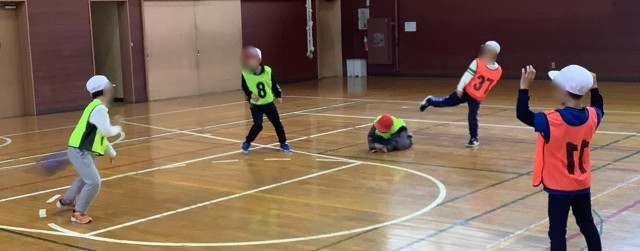 11/7(金)、2年生の体育「ボール投げゲーム」です。まずはなわとびでウォーミングアップ。カードの記録を見ると、だんだんと跳べる回数が増えています。次は4チームに分かれてボール投げゲームです。作戦会議を行ってから、ボールを投げたり、ボールから逃げたり、じゃまをしたりと、元気に体を動かしていました!