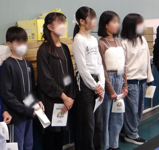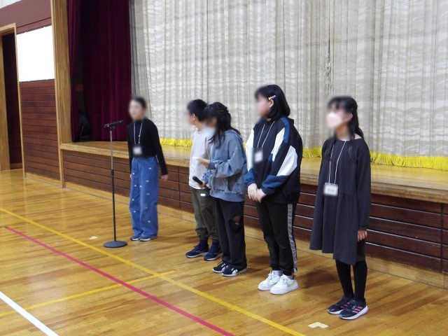 11/20(木)、留萌中学校区の3校児童交流を行いました。開会式の後は、校舎を案内してもらったり、国語、数学、理科の授業を見学したりしました。その後は各校によるレクを行いました。「じゃんけん列車」「バースデーライン」「猛獣狩り」を、自己紹介も織り交ぜながら、楽しみました。少年団や習い事などで、顔見知りの友達も何人かいたようでした。閉会式の司会進行は本校が担当し、各校の代表に感想発表などをしてもらいました。次年度から同じ学校になる子どもたちが、仲良く交流していました!