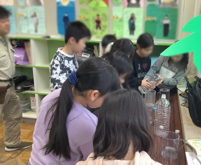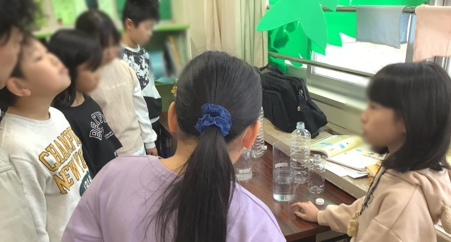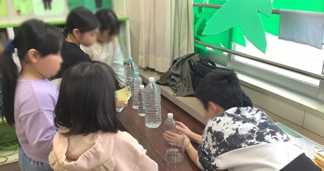 11/21(金)、4年生の算数「小数のしくみとたし算、ひき算」です。単元の1時間目の学習として、ペットボトルに入った水の量についてまず考えました。0.1Lもない水の量を表すときには、0.1をさらに10等分した0.01を用いることを学びました。今後はこれらの小数のたし算やひき算について、学習していきます!