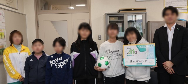 また、お昼休みには「明治安田の未来世代応援アクション with Jリーグ」の活動の一環として、オリジナルサッカーボールをいただきました。児童会代表5名が校長室で受け取りました。春になって雪が溶けたら、グラウンドでたくさん使ってほしいですね!