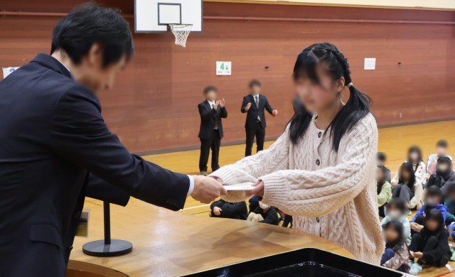 12/24(水)、第2学期の終業式を行いました!読書感想文コンクールの表彰式を行ってから、開式しました。1・3・5年生の代表児童が、2学期の思い出や反省と冬休みに頑張ることを発表しました。学芸会や宿泊研修で頑張った思い出や、スキーやお手伝いを頑張りたいとの抱負を立派に発表しました。児童会代表の挨拶の後の校長先生のお話では、2学期の行事を振り返ったり、「今月の緑小キラリ!」を発表したり、「冬休みの3つの約束」を話したりしました。最後に元気に校歌を歌い閉式しました。明日からの22日間の冬休みが、子どもたちにとって充実した日々となることを願っています。皆様、どうぞよいお年をお迎えください。