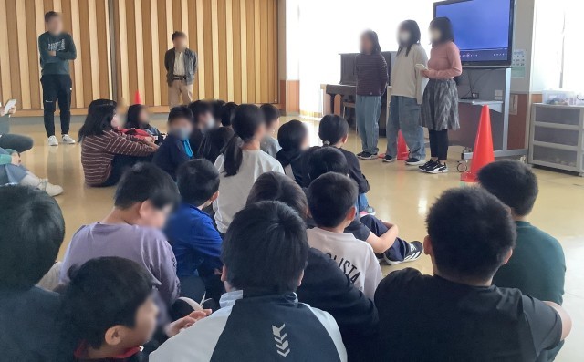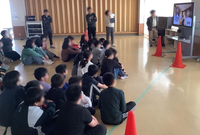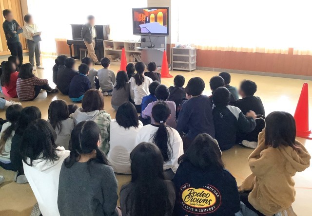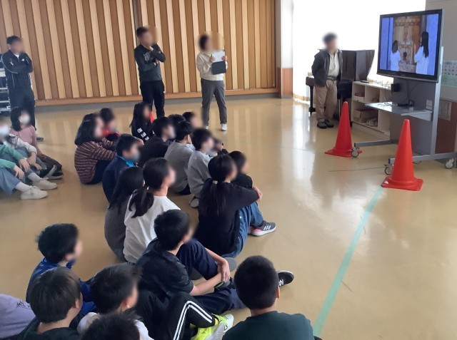 1/23(金)、映画クラブが制作した「相棒」の上映会を業間休みに1階ホールで行いました!60人くらいの子どもたちが集まってくれました。チャレンジの丘で滑って遊んでいると、突然未来にタイムスリップしてしまい、そこはもう緑丘小ではなかったため、不審者として追われるというストーリーです。7~8分の動画でしたが、子どもたちは時には笑いながら、とても楽しそうに鑑賞していました。最後に映画クラブの子からの挨拶が終わると、会場は大きな拍手に包まれました!