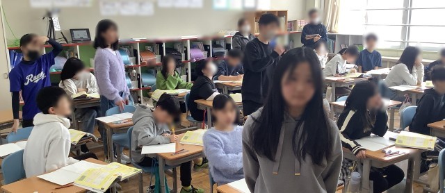 3/3(火)、6年生の算数「さいころの目の出やすさ」です。6年生での学習を終え、中学1・2年の発展内容「数学のとびら」の学習です。今日は🖤が3面、♠が2面、♦が1面のさいころを2つ同時にふった時、どの目の組み合わせが一番出やすいのかを考えました。全員が表を完成させると、🖤🖤の組み合わせよりも、🖤♠の組み合わせの方が出やすいことが分かりました。予想が当たっていたのは9名でした!その後、「ことがらの起こりやすさを確率ということ」を学びました。中学校では、並べ方と組み合わせをもとに、ことがらの起こりやすさについて、学習していきます!