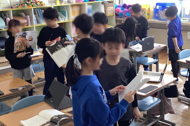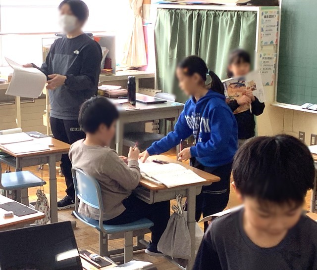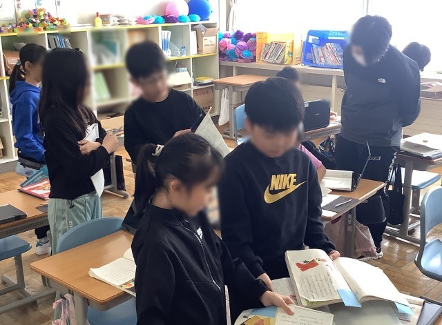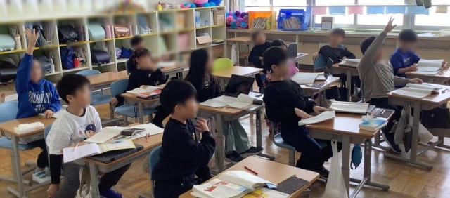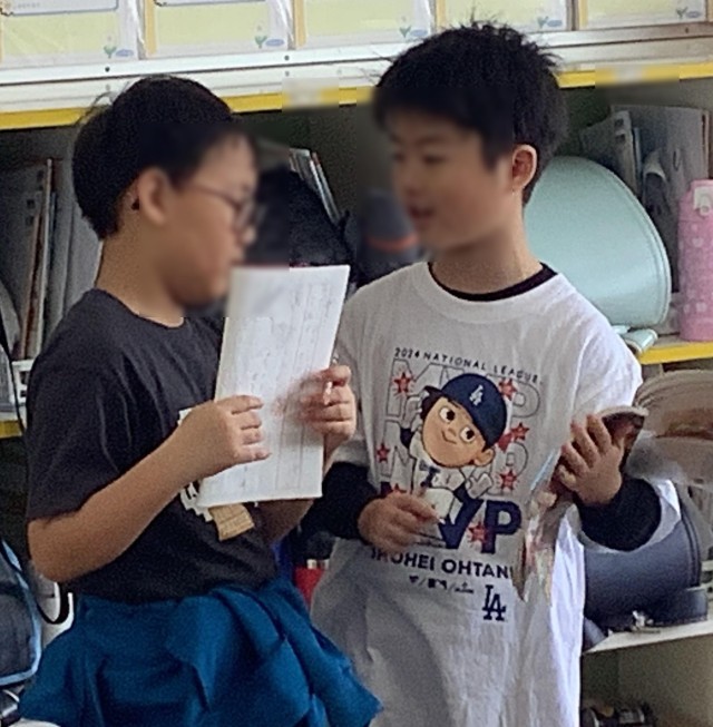 3/5(木)、2年生の国語「アレクサンダとぜんまいねずみ」です。このお話は長年教科書に掲載されており、野ねずみのアレクサンダが、おもちゃのねずみのウィリーとの出会いを通して、友情の大切さに気付く物語です。今日は「アレクサンダが願いを変えたことに賛成か、反対か?」という課題を考えました。初めは賛成の子どもたちが多かったですが、だんだんと悩む子が増えていきました。教科書から根拠を探したり、友達と相談したりしながら真剣に考えていました。「意見を発表したい子?」と訊くと、たくさんの手が上がり、言いたくて仕方がないという意欲的な子がたくさんいました。学びに向かう姿勢が大変立派でした!