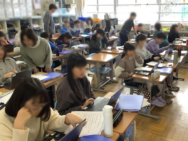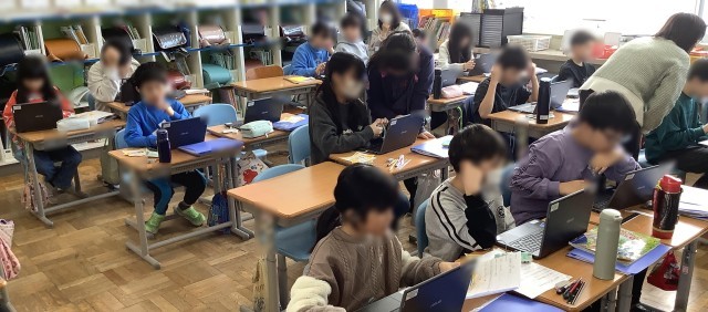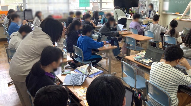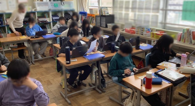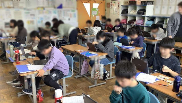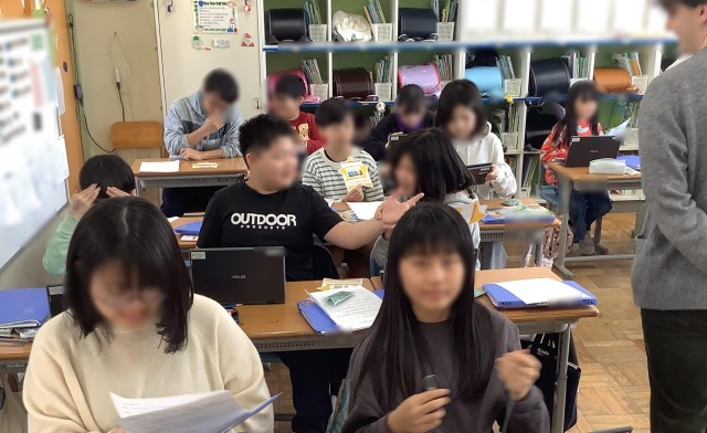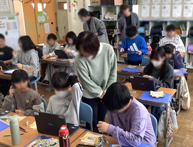 3/6(金)、5年生の外国語「My Hero,My Dream Friend」です。前時までに子どもたちは、自分のあこがれの人や友達になってみたい人を紹介する英語文をワークシートに記入しています。大谷翔平や山本由伸、中井亜美、平野歩夢といったスポーツ選手から、HANAやジェシーなどの芸能人、ミャクミャクやアニメのキャラクターなど様々でした。今日はこのワークシートを写真に撮って、発表音声をPCに録音しました。それをAIが解析し、発音を評価してくれるだけではなく、さらには直すべき発音の単語も示してくれます。100%と完璧な発音の子も!子どもたちは慣れた手つきでPCを操作しながら、自分の発音を熱心に確かめていました!