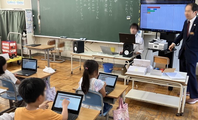 6/23(月)、2年生の「留萌の音をつくろう!」です。今年も旭川教育大の芳賀教授と学生数名に来ていただき、特別授業をしていただいています。今日の2年生は留萌に関係している音をPC上で組み合わせて、音をつくる学習でした。最初に留萌に関係してる音を聞きました。海の波の音・自衛隊のヘリコプターの音・中学校のチャイム・川の流れる音・セイコーマートの歌・山岡家の歌・かもめの鳴き声・船の音・セブンイレブンの入店の音・ローソンの歌の10種類でした。これらの音で自分が作りたい音を録音し、それをPC上で好きなように配置していきました。最初は少し操作が難しいかと思いましたが、さすが今の子どもたちです。すぐに慣れて、音をいろいろなところに配置したり、長さを変えたり、速さを変えたりしながら、自由に音作りを楽しんでいました!