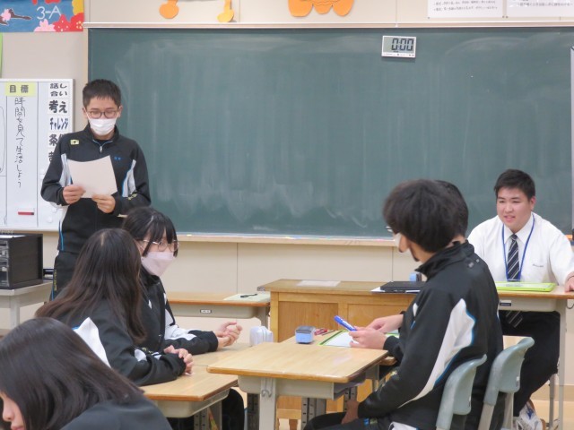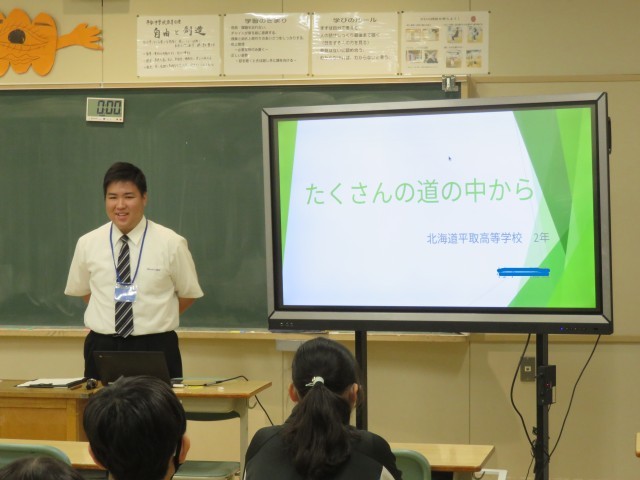 24日、27日、28日の3日間の日程で平取高校の2年生がインターンとして、本校に来校しました。今日は最終日ということで、3年生に進路講話はしてもらいました。年齢も近いということもあり、真剣に聞いていましたね。最後は四役が企画したレクをして3日間を締めくくりました。教員を志望するということでこれから大学進学に向けて勉強を頑張ってほしいと思います。3日間お疲れ様でした!