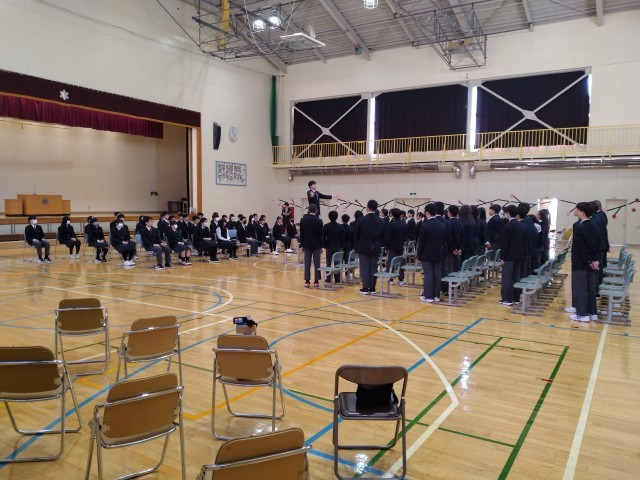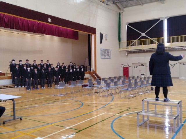 卒業式を2日後に控えた今日、総練習を実施しました。ほぼ修正点のない内容で、思いが伝わる歌声は本番さながらでした。今の全校生徒としての生活もあと2日です。