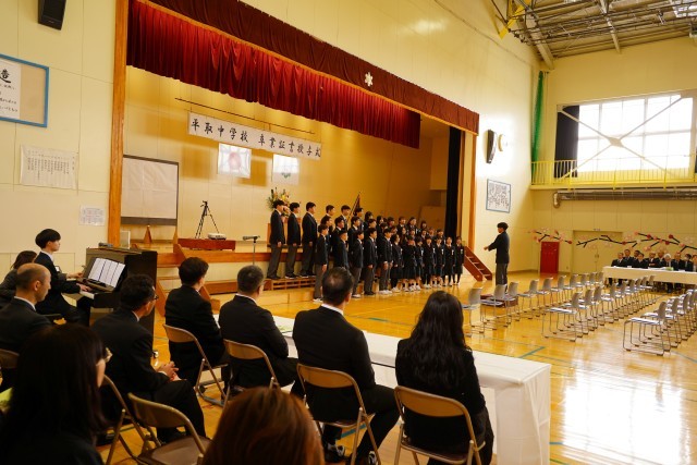 第79回卒業証書授与式において、37名の卒業生が平中を巣立っていきました。凛として頼りになる姿を、この日も見せてくれました。在校生も大変立派でした。卒業生のみなさんには挑戦を続ける力があります。この地で学んだことを誇りに、自信を持って一歩ずつ歩んでいくことを願っています。卒業、おめでとう!