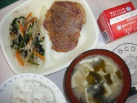 ・麦ご飯・大根と油揚げのみそ汁・ぶた肉のしょうが焼き・キャベツのごまあえ・牛乳7...